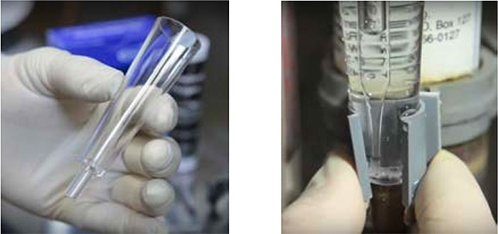 Los juegos de pruebas CHEMetrics están equipados con un “tubo de muestreo” especial que está montado verticalmente y conectado al puerto de muestreo del sistema de la caldera.