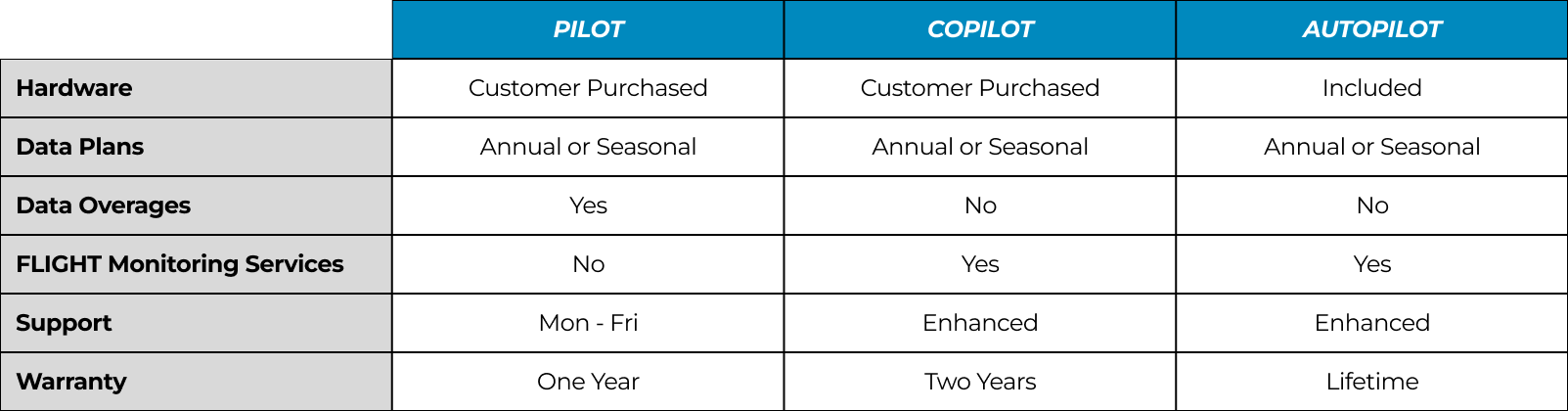 Tailored service plans to match your business needs. Choose from flexible options covering hardware, data plans, overages, monitoring, support, and warranty—ensuring seamless connectivity and reliability.